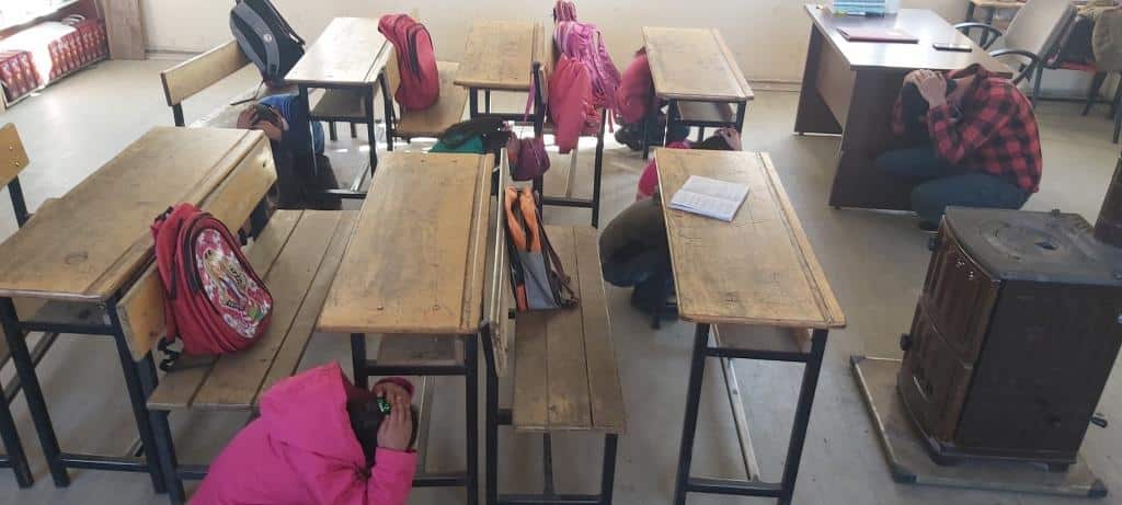 tüm okul personeli ve öğrencilerimizin katılımıyla gerçekleştirdiğimiz deprem tatbikatımız